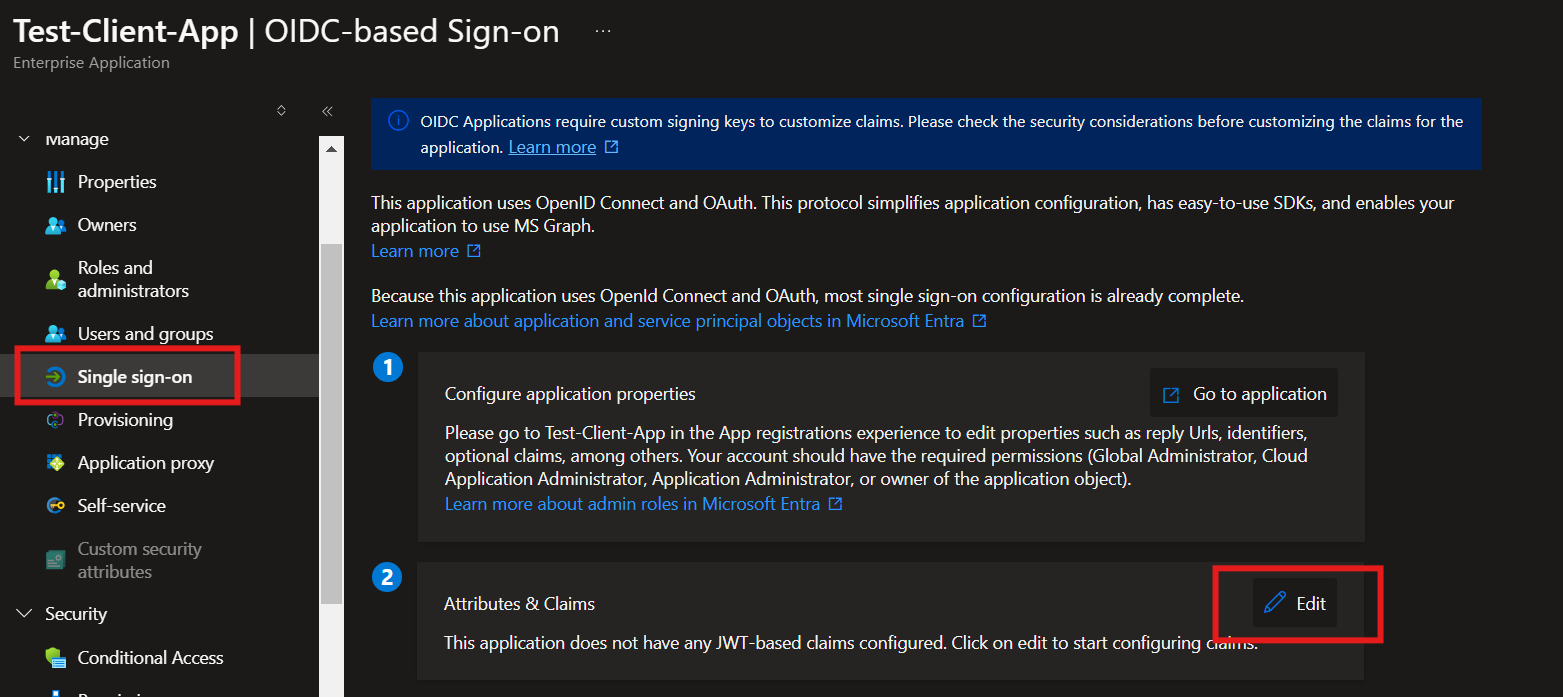 Click on Single sign-on on the left panel and then Edit Attributes & Claims section.
